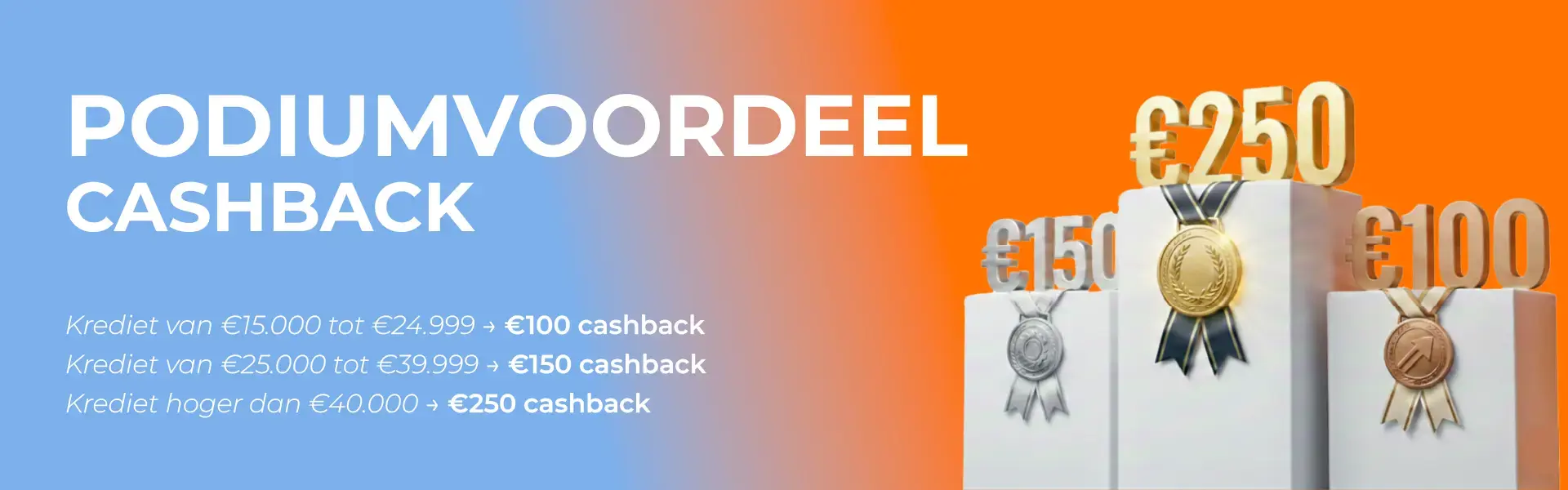- Krediet van €25.000 tot €39.999 → €150 cashback
